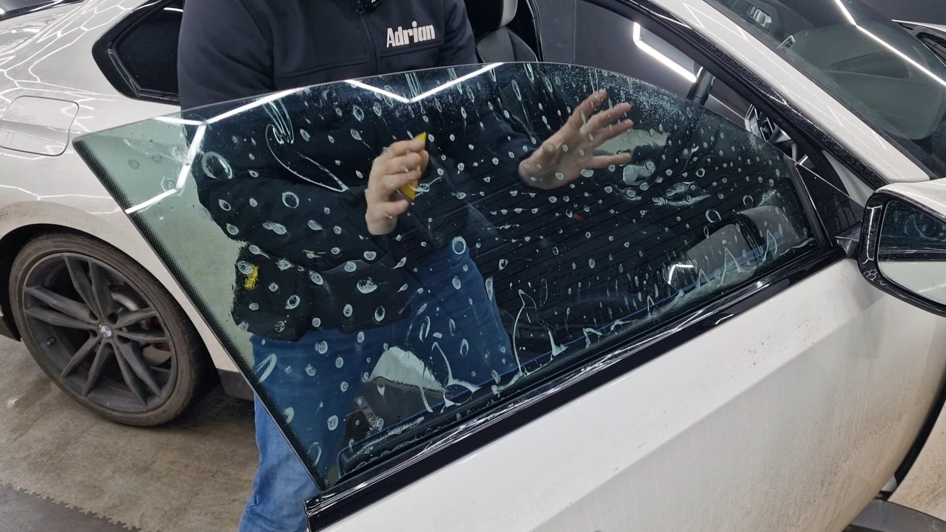 Cum aplicam folia pe geamul frameless cu buline pe margine